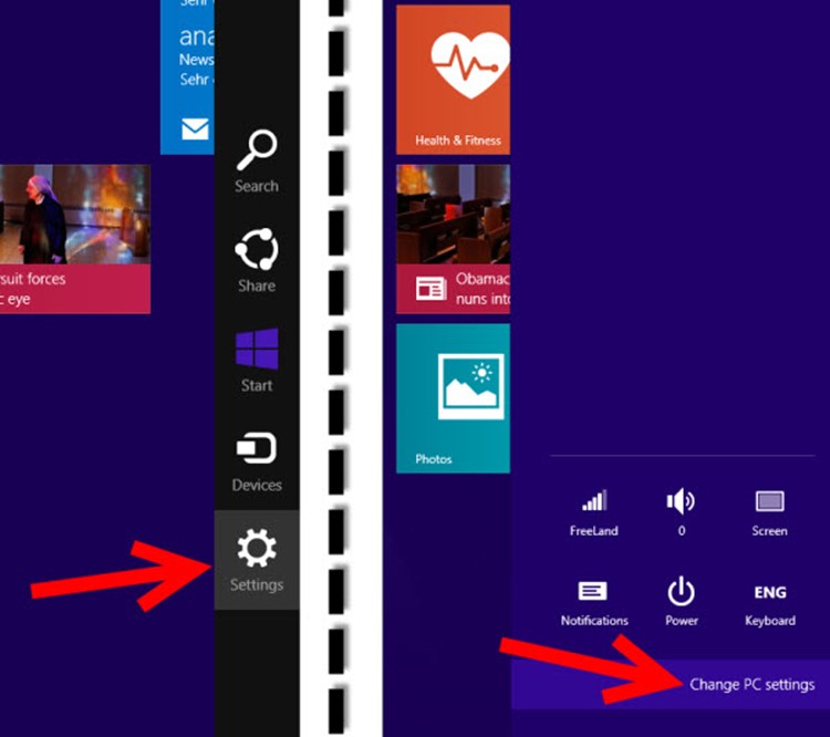 1. Otwórz ustawienia komputera korzystając z paska bocznego (Charms-Bar)