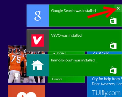 Maksymalny czas wyświetlania powiadomień to pięć minut. Jeśli zobaczyliście już powiadomienie, możecie je ręcznie zamknąć. System Windows 8.1 pokazuje jedynie trzy „ogłoszenia” jednocześnie. Po usunięciu jednego powiadomienia pojawią się kolejne, jeśli takie istnieją.