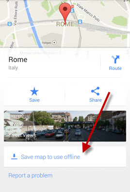 Przewiń w dół menu, które się pojawiło i wybierz opcję Save map to use offline.